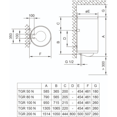 Форма бойлера - цилиндрическая, настенный, установка - вертикальная, объем - 150 л, тип ТЭНа - мокрый, количество ТЭНов - два, 2000 Вт, тип управления - механическое, сталь с эмалевым покрытием, IP 23, температура нагрева - 65 °С, 230В/50Гц, высота - 1305 мм, ширина - 454 мм, глубина - 461 мм, вес - 41 кг, белый