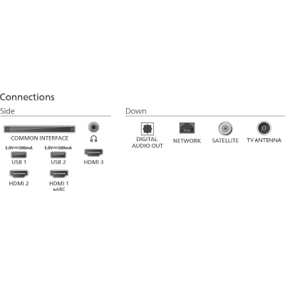 3 x HDMI,Антенный,1 x цифровой аудио-выход,1 x RJ-45,2 x USB,CI
